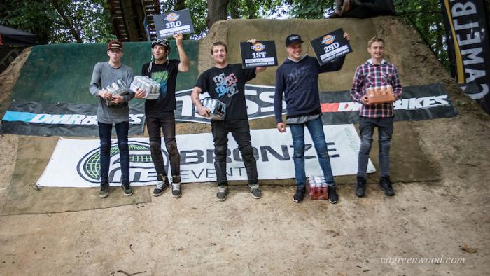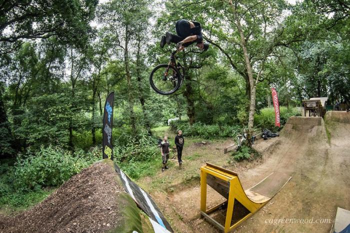 That later date came this weekend (Sunday 4th September) with a tour favourite, Holdshott Trails chosen as the venue. The weather tried to interrupt the proceedings once again, with a few showers leading up to the event, but luckily Holdshott Trails can take on a fair amount of water before they become unrideable. At the last round held here, the open class competed on the 'comp line' dirt jumps and the pro class on the newly built 'slope line', this time the organisers handed the decision to the riders with both categories unanimously voting to compete on the 'slope line'. With all the riders signed up and the course decided, it was time to pad up and get the competition underway.