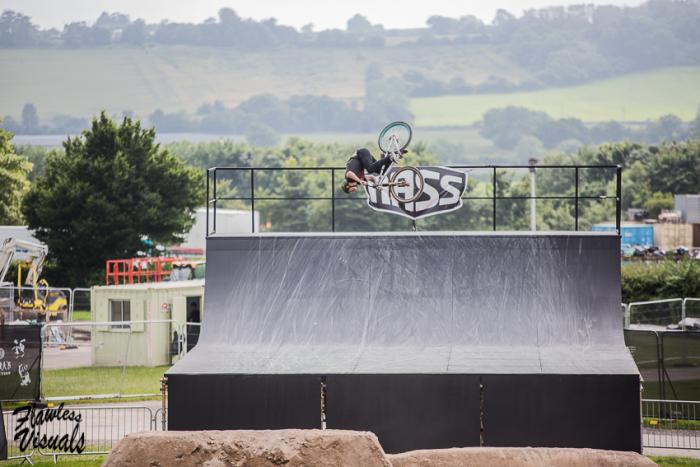 Friday saw the riders get out on the course and get in a bit of practice but even then the riders were getting blown all over the place. Tom Isted (who also rode in the BMX World Championships) flipped the first jump in practice but when going for a tailwhip over the second jump the crosswind stopped the rotation of his bike sending him down onto the hard packed floor like a sack of spuds. This ended practice as all the riders and comp organisers decided it had got too dangerous and we would wait till the saturday and run a bit of practice before quallys.