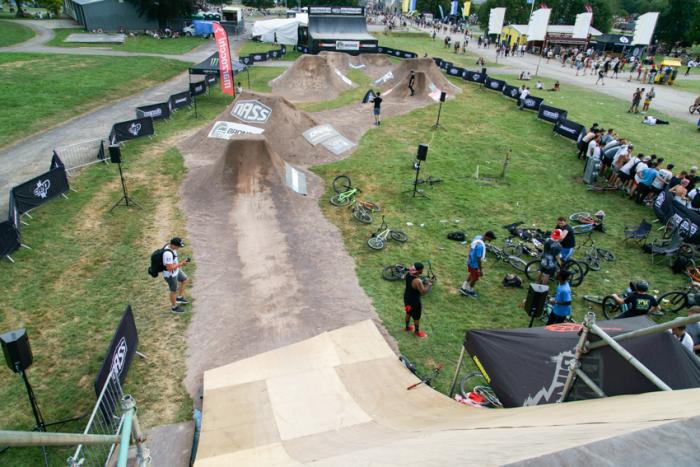 Most riders arrived at the festival on the friday and got padded up straight away ready for practice on the course consisting of a huge right hand hip followed by a pretty big left hand hip onto a step up with a quarter pipe then a drop to the last straight jump. Due to the size of the first hip you could see there was a bit of concern in the faces of most of our Open/Amateur riders as most had not ridden hips that big before, it also didnt help that the landings were like concrete and would take your skin off like 20 grit sandpaper if you crash. First up on the roll in was Mongoose Pro rider Tom Isted who had already been riding the jumps earlier in the day on his 20” wheel BMX as he was also competing in the World Championship Dirt and Park Comps that were also being held at NASS.
