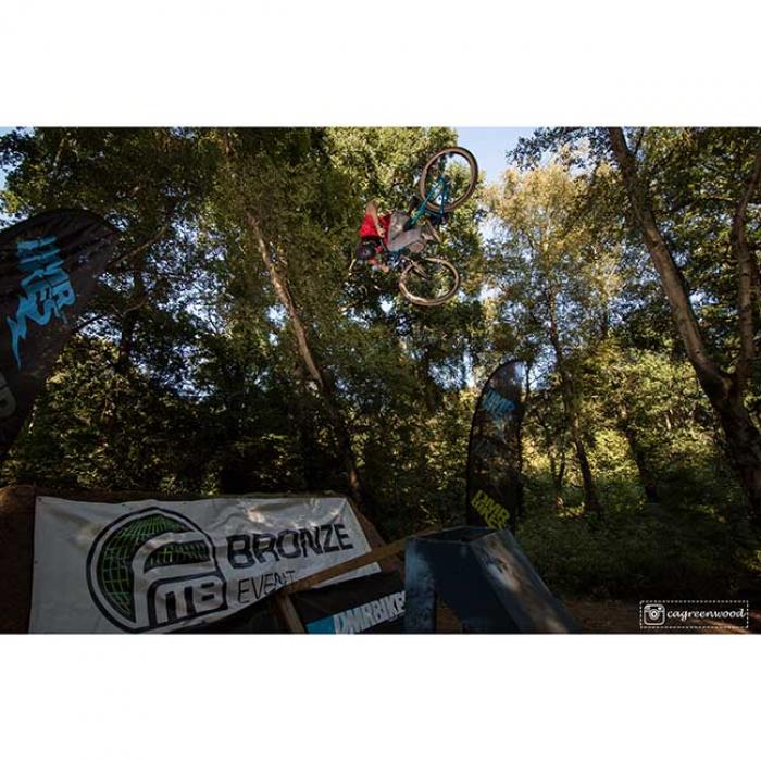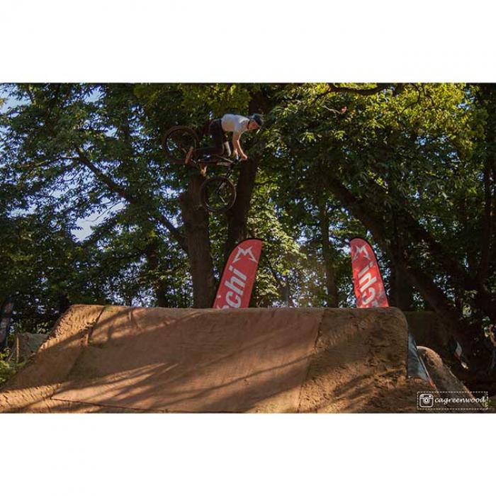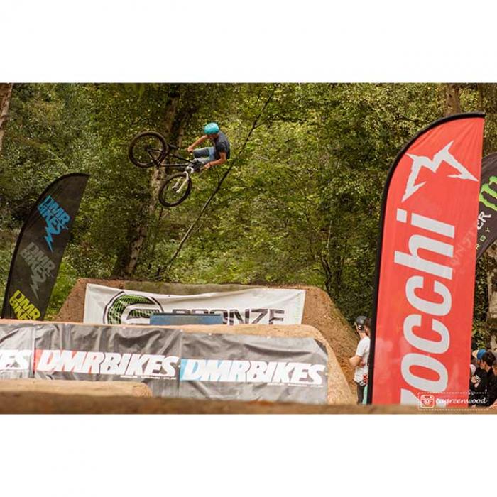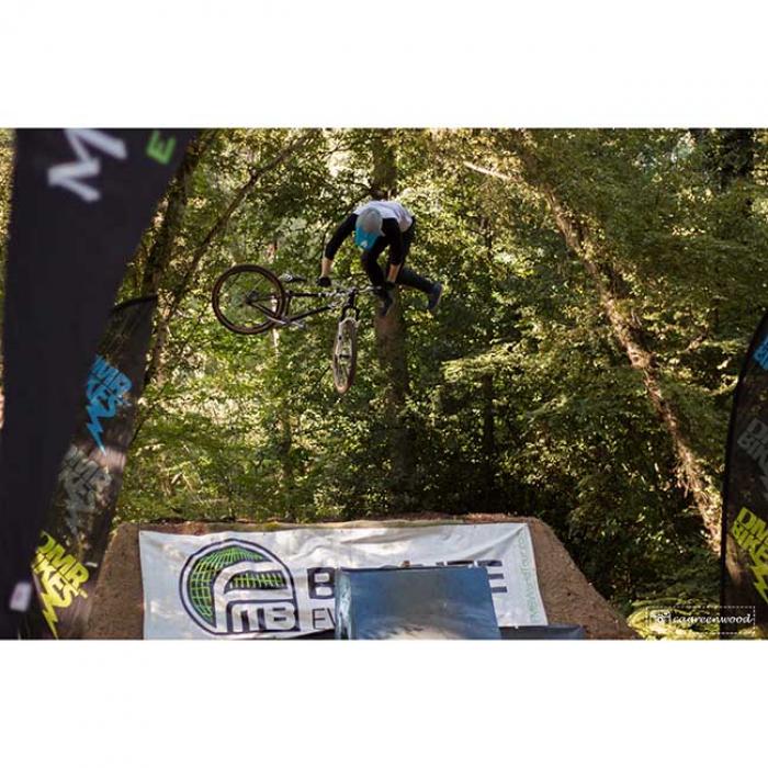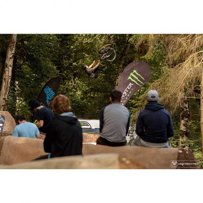 With the Open riders out the way the Pro riders hit up the course and started to smash big banger tricks out one after the other. Nangle pulling sevbombs (720s) Matt Scott trying to pull sevbombs mid course Daryl Brown’s 360 double bars, Matt Jones 360 tuck to bars it was all going off. Alfie Stephens came out with super smooth 3 downside whips on the last and Freddy Pullmans front flips were almost through the tree tops and yet again Danny Stewarts disco cans to pendulums made him look like a flying octopus. After the riders had had their runs the top 7 went through.